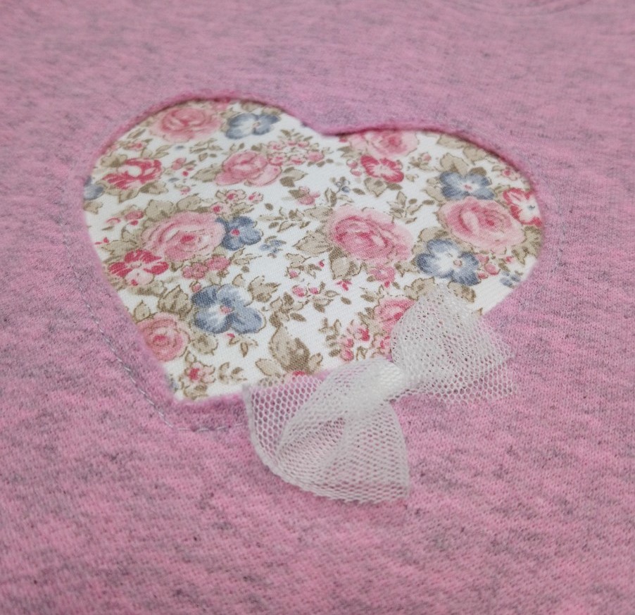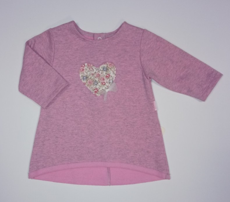 Delikatna i bardzo dziewczęca różowa tunika z długim rękawem. Tył tuniki jest dłuższy, a na środku wszyte zostało serce ozdobione mała kokardką. Wykonana z delikatnie ocieplanego materiału - sprawdzi się w chłodniejsze dni.