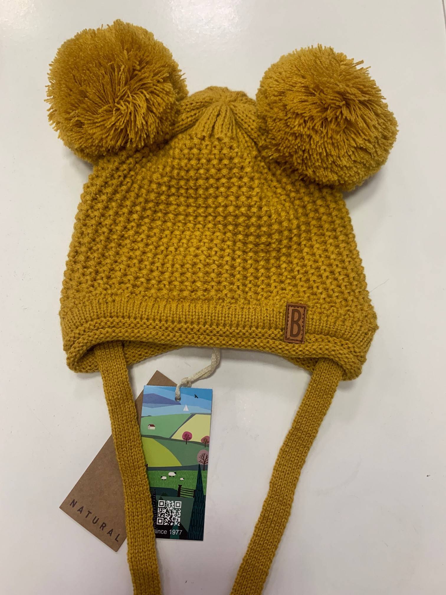 Barbaras Czapka Wiązana az40 2 Pompony Musztarda 40-42