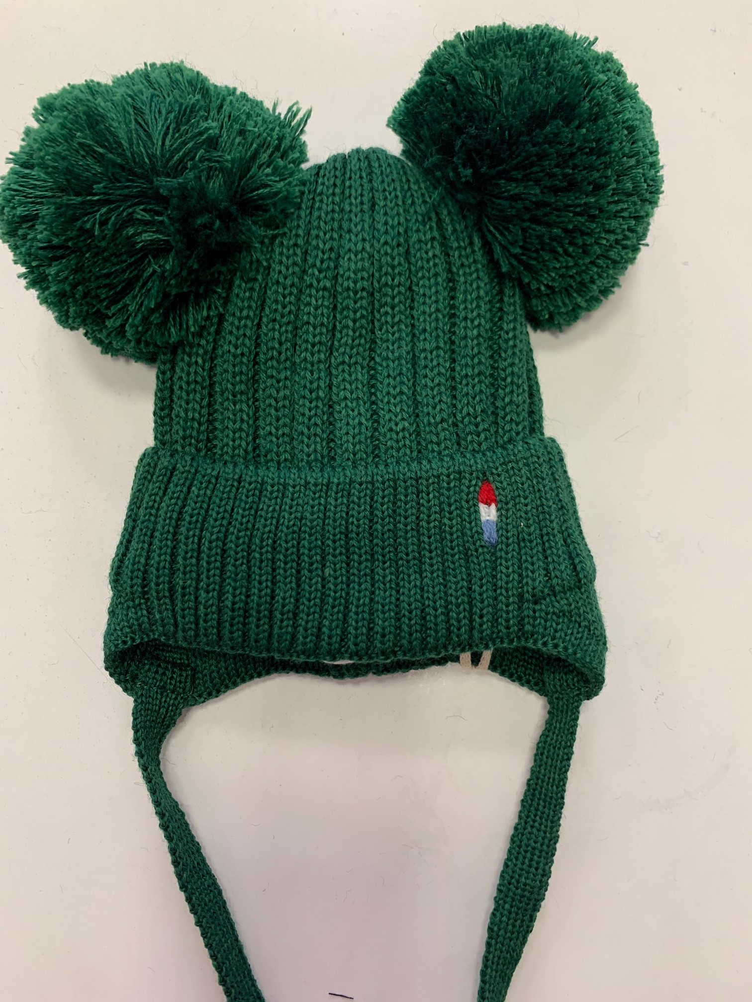 Czapka polskiej firmy Barbaras. Wiązana. KOLOR ZIELONY. 2 pompony.