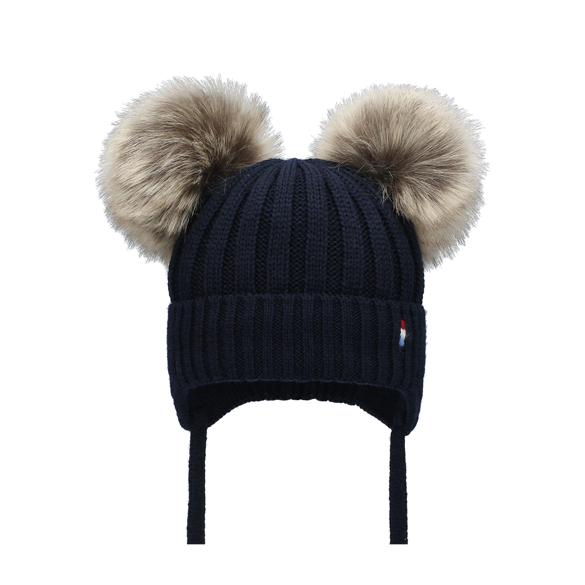 Czapka polskiej firmy Barbaras. Wiązana. KOLOR GRANATOWY. 2 WŁOCHATE pompony.