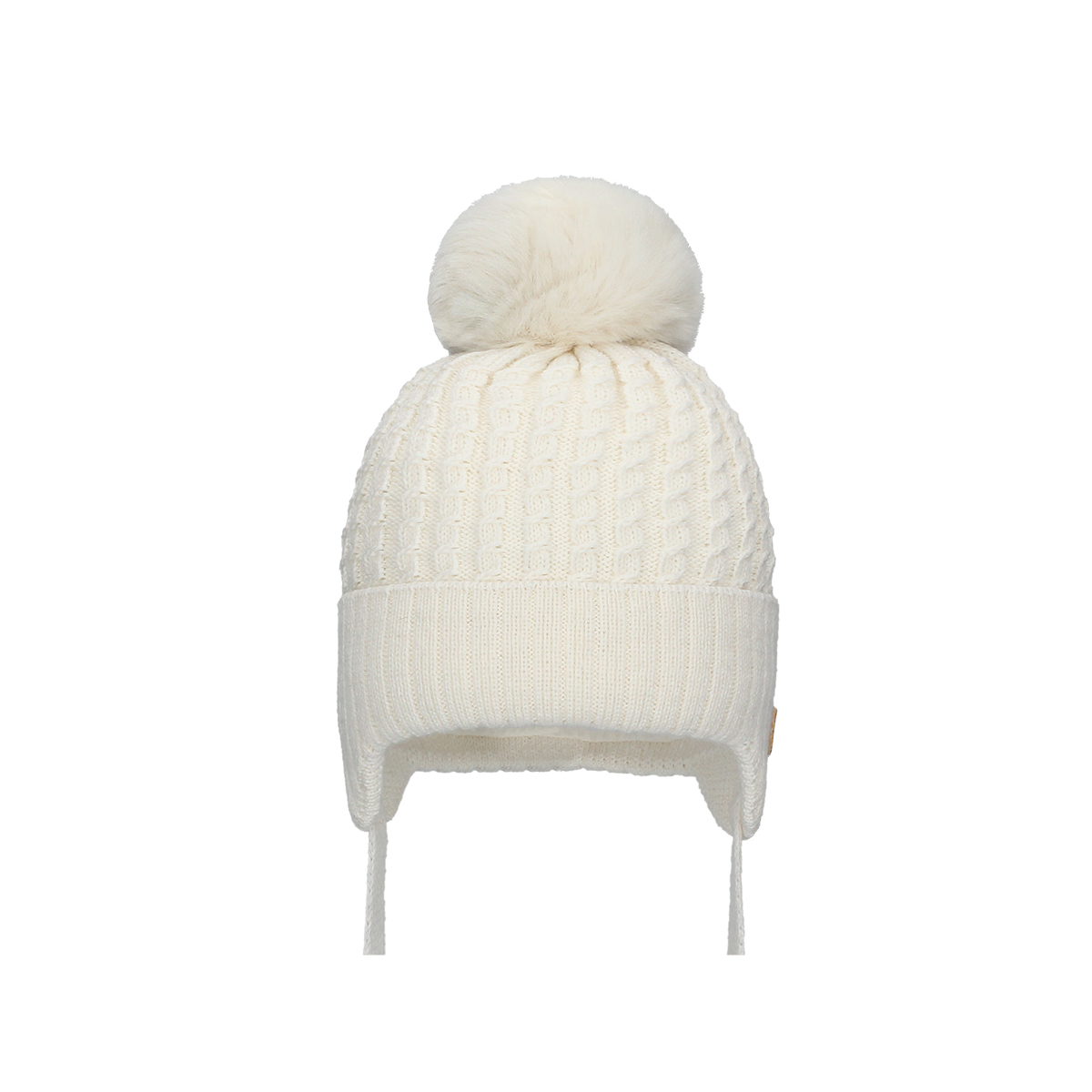 Czapka polskiej firmy Barbaras. Wiązana z WŁOCHATYM pomponem. KOLOR Kremowy.