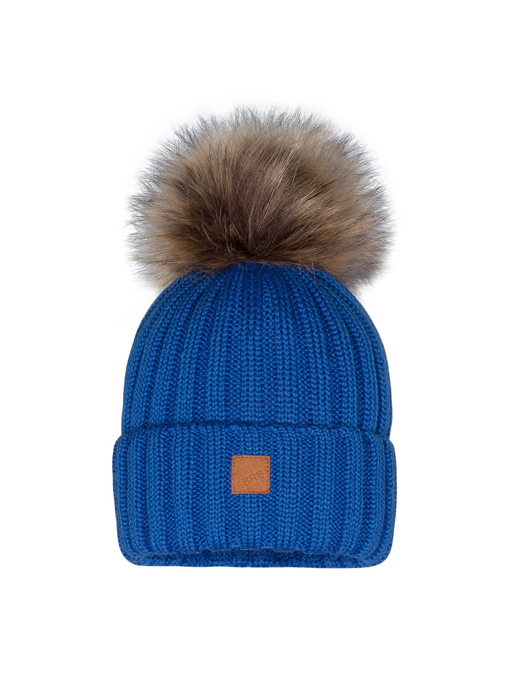Barbaras Czapka Zimowa Merino Pompon 44-46 Na Podszewce Niebieska WB44