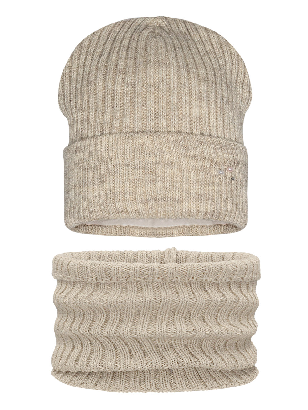 Barbaras Komplet Beżowy Czapka Komin HX72 48/50