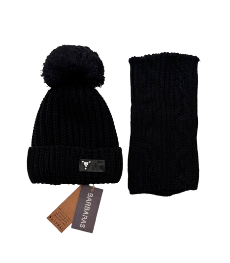 Barbaras SET Czapka Komin Zimowa Merino 48-50 Na Podszewce Czarny WB54