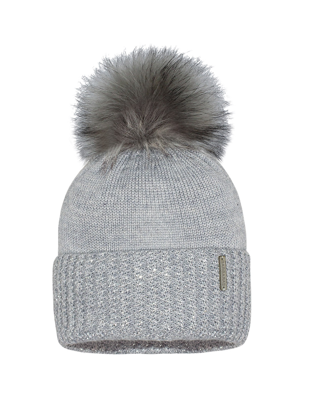 Elegancka, wełniana czapka dla dziewczynki z pomponem. Zaprojektowana w dwóch splotach, góra gładka a otok powstał w splocie krzyżowym z dodatkiem srebrnej przędzy. Dobierając rozmiar czapki, wybierz o 1 cm mniejszy niż obwód, np. gdy głowa Dziecka ma 45 cm obwodu to wybieramy rozmiar 44/46 cm. Obwód głowy mierzymy na wysokości czoła, za uszami.