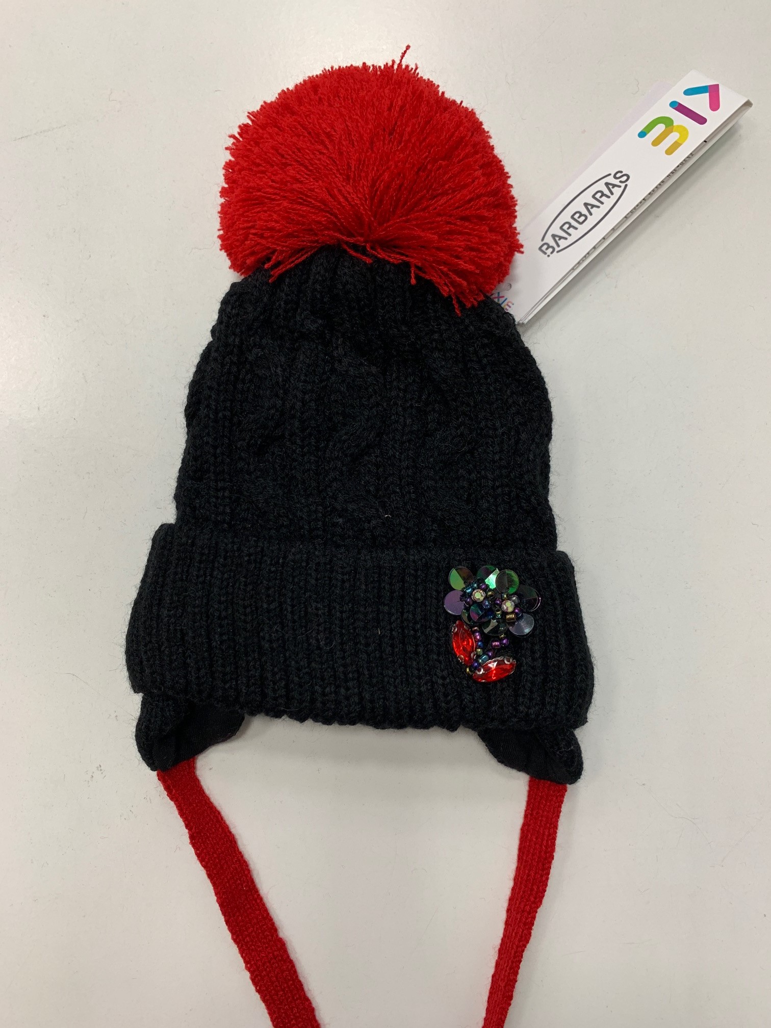 Czapka Wiązana Czarna Barbaras AV123 Kwiaty 44/46