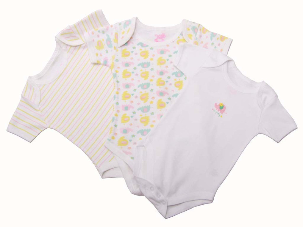 Body z krótkim rękawem w 3paku w jasnych, pastelowych kolorach z motywem słonika.