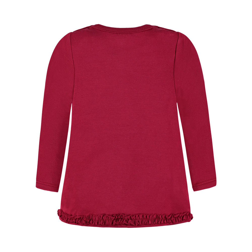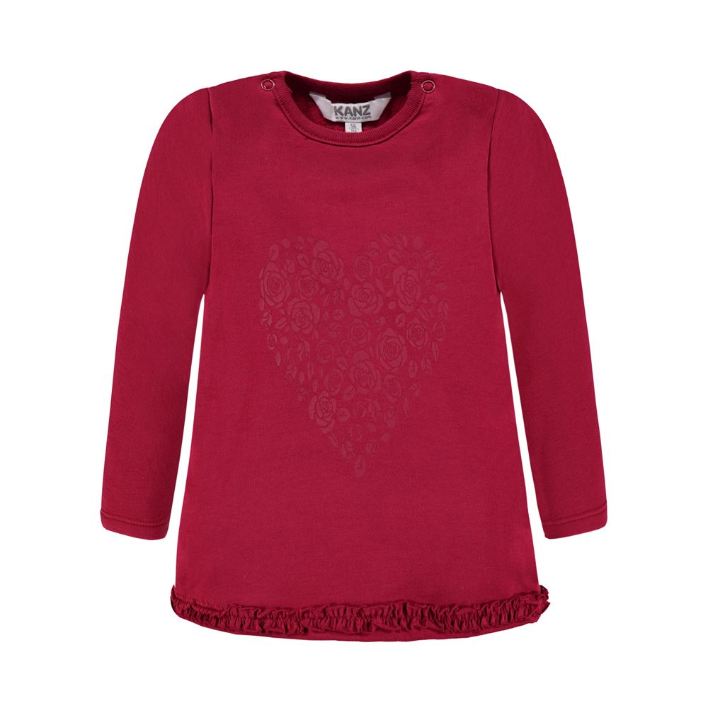 Dziewczęca bluza z długim rękawem w typowo dziewczęcym, czerwonym kolorze idealnie sprawdzi się na co dzień do spodni, legginsów ale również spódniczki. Dzięki swojej dziewczęcej kolorystyce bluzeczka z pewnością spodoba się każdej małej damie, a dodatkowa aplikacja z przodu na bluzce dodają jej uroku. W mniejszych rozmiarach bluza jest rozpinana na ramionach, aby łatwiej można ją było założyć i zdjąć przez główkę. Od wewnętrznej strony jest delikatnie ocieplana, dzięki czemu dziewczynce będzie ciepło i przyjemnie. Bluza w dolnej części posiada falbankowe przeszycia, które dodają całości bardzo dziewczęcego charakteru i z pewnością spodobają się każdej młodej damie i jej mamie. Miła w dotyku, wykonana z wysokiej jakości bawełny bluzka z pewnością będzie fajnym uzupełnieniem każdej dziewczęcej stylizacji.