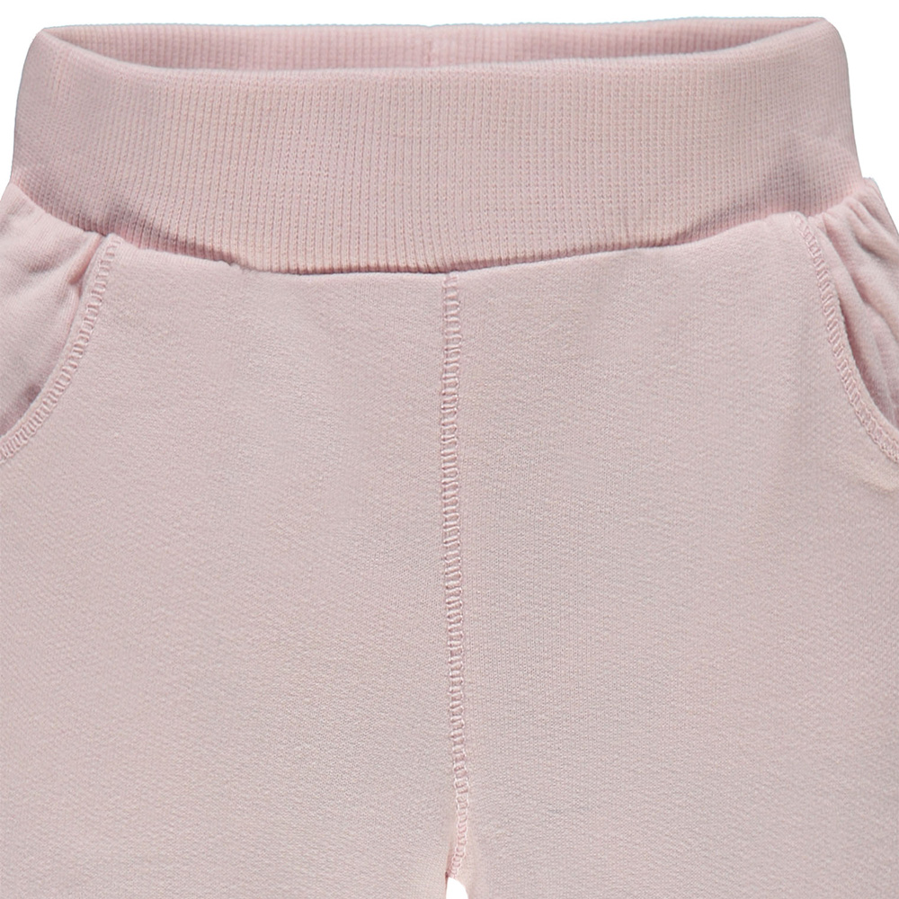 Dziewczęce spodnie dresowe, które sprawdzą się idealnie dla każdej młodej damy do codziennych psot i zabaw. Spodnie są w delikatnym, różowym kolorze więc będą fajnie pasować do niemal każdej dziewczęcej bluzeczki czy bodziaków. Spodnie są w gumkę w pasie co ułatwi młodym rodzicom zakładanie i zdejmowanie spodni. Nogawki zakończone są ściągaczami. Od spodu spodnie są delikatne ocieplone dzięki czemu sprawdzą się idealnie w chłodne dni do zabaw na świeżym powietrzu, a małe kieszonki ukryją drobne skarby. Miękkie, wykonane z wysokiej jakości bawełny spodnie będą pasować każdej dziewczynce do każdej bluzki, sweterka czy bodziaków.