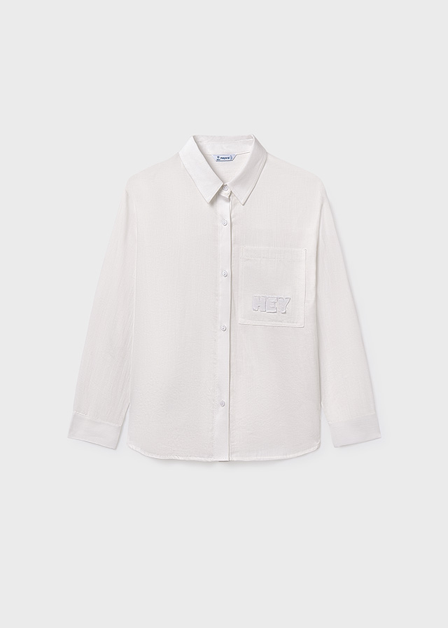 Koszula dziewczęca. Miękki, wysokiej jakości materiał. Zapinana na guziki. Świetny model pudełkowy oversize. Haftowana kieszeń. Idealna na co dzień oraz specjalne okazje.