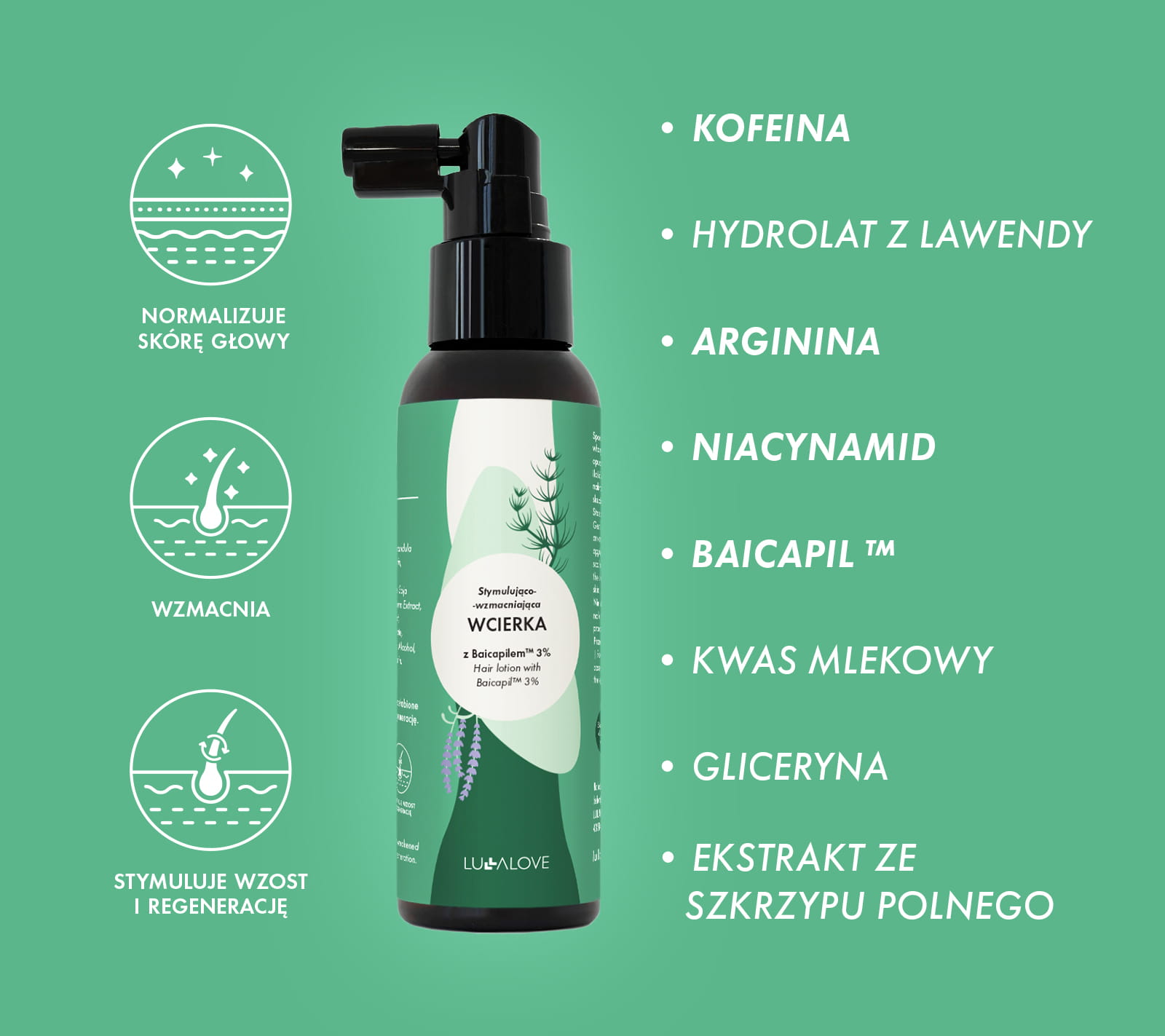 Lullalove Stymulująco-wzmacniająca wcierka z Baicapilem ™ 3%