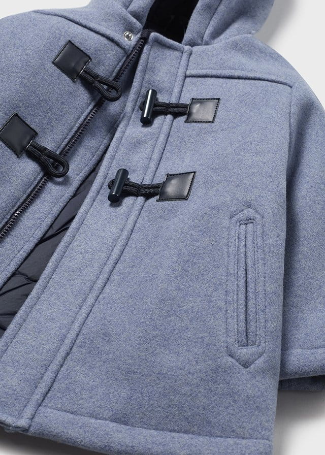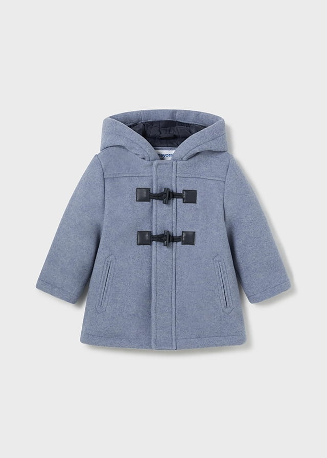 Płaszcz z długim rękawem dla chłopca Okrągły dekolt z kapturem. Zapięcie na zamek i guziki z pętelkami. Ciepła tkanina zapewniająca wygodę i delikatność w dotyku. Z przodu kieszenie. Krój prosty. Podszewka wykonana ze śliskiego materiału.