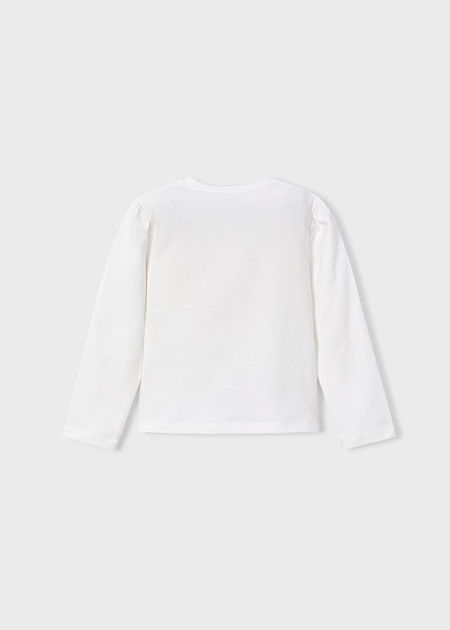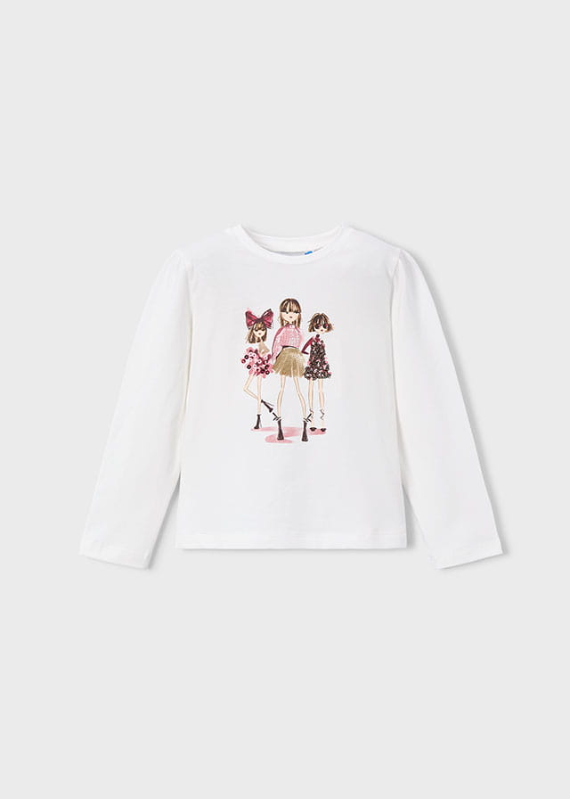 Bluzka z długim rękawem dziewczynki. Okrągły dekolt, krój prosty. Ubranko wykonane z bawełny delikatnej i przyjemnej w dotyku.