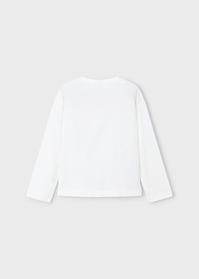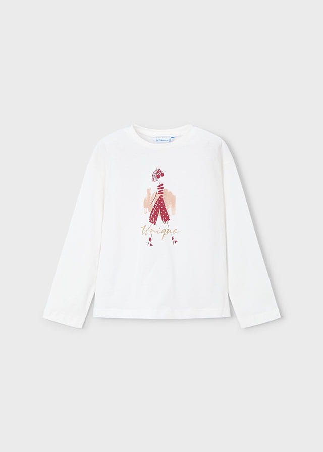 Bluzka z długim rękawem dziewczynki. Okrągły dekolt, krój prosty. Ubranko wykonane z bawełny delikatnej i przyjemnej w dotyku.