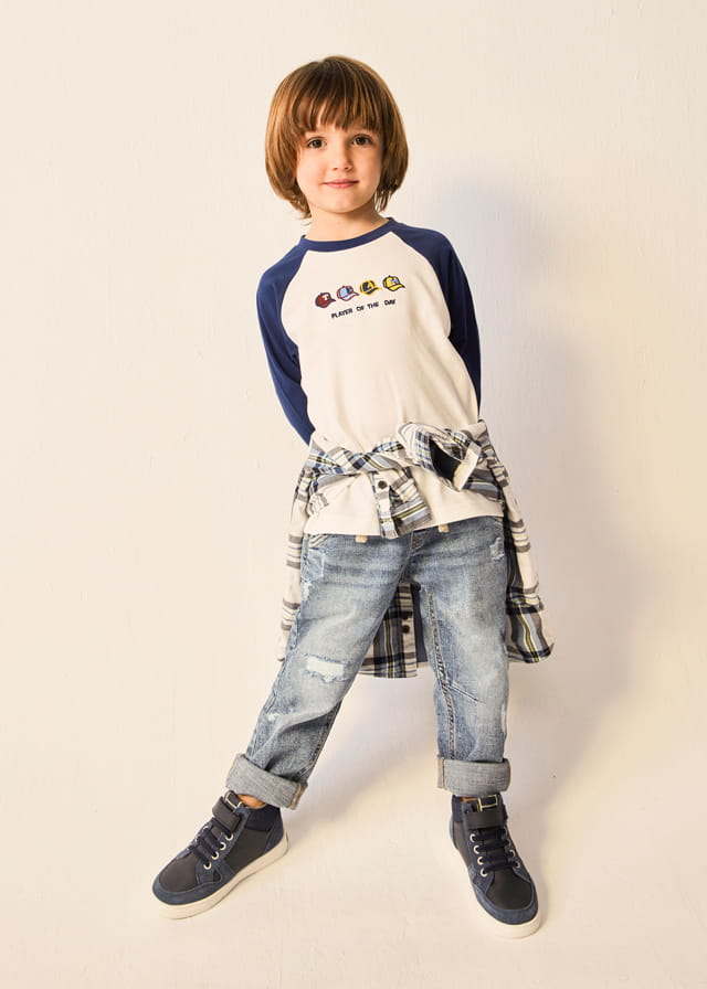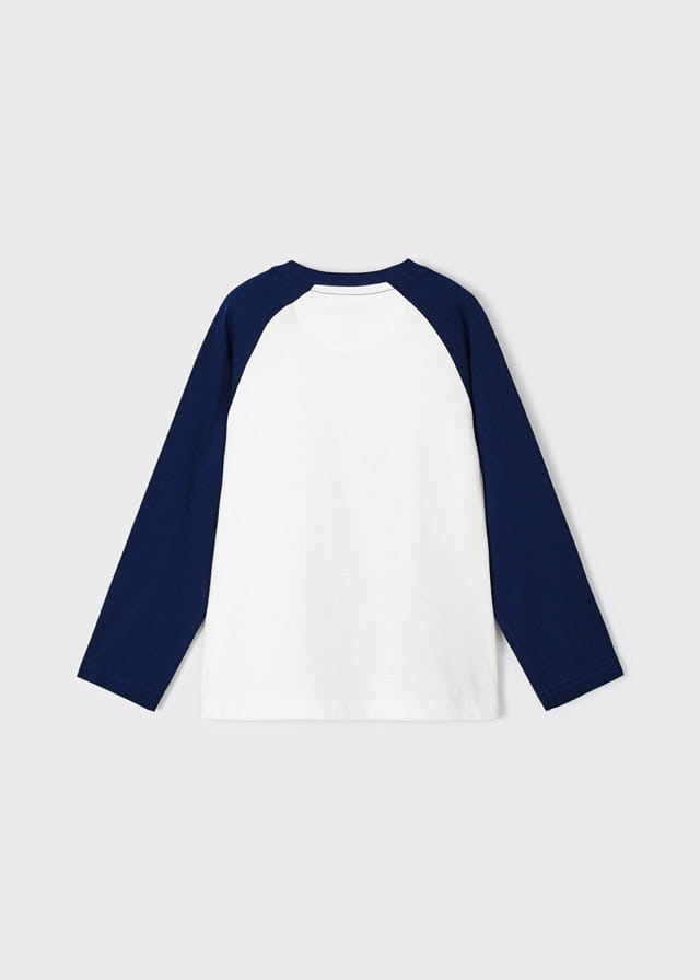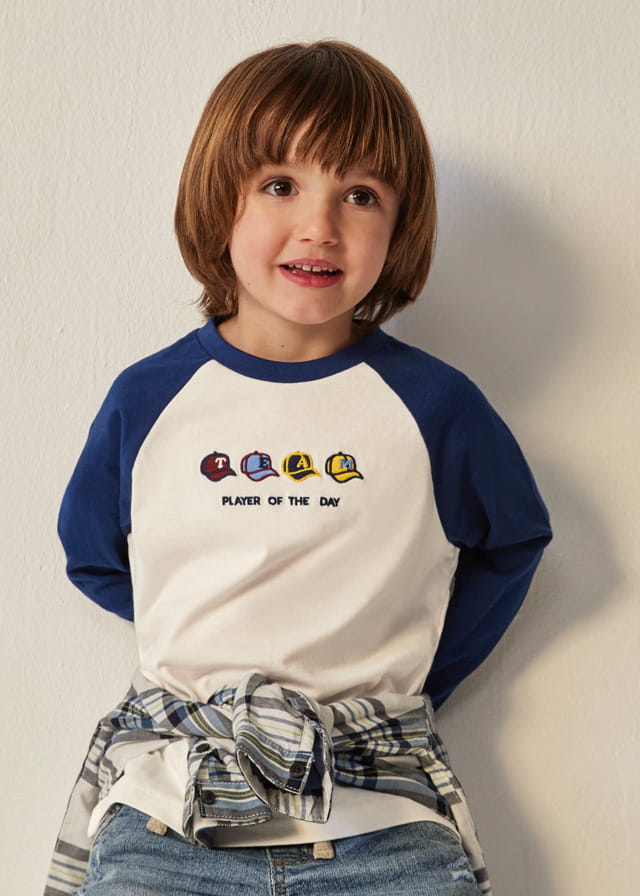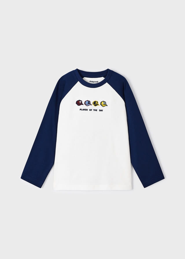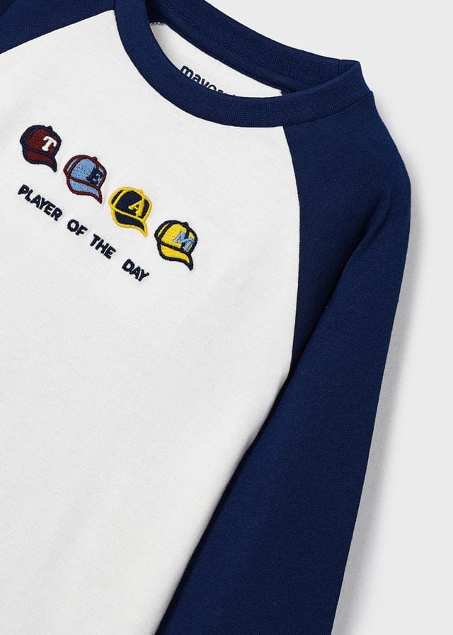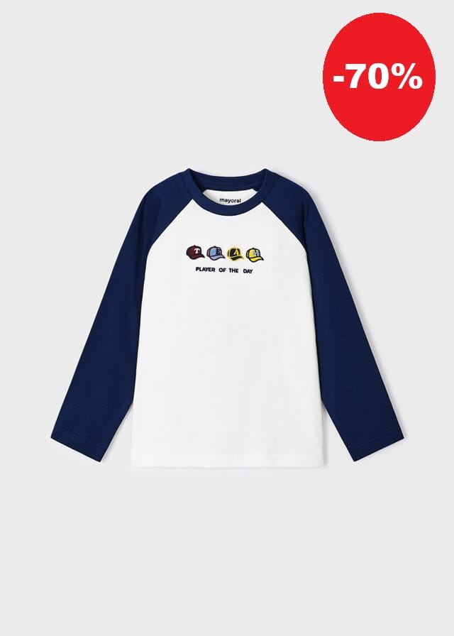 Koszulka z długim rękawem dla chłopca. Okrągły dekolt. Model z haftami z przodu. Artykuł wykonany ze 100% bawełny.