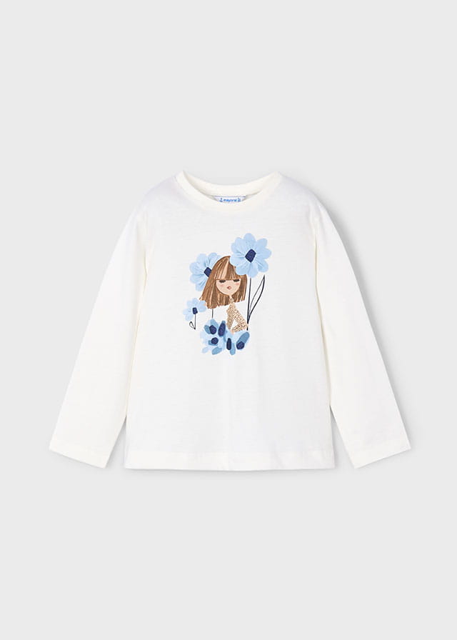 Bluzka z okrągłym dekoltem, krój prosty, nadruk z przodu ubranka, 100% bawełny.