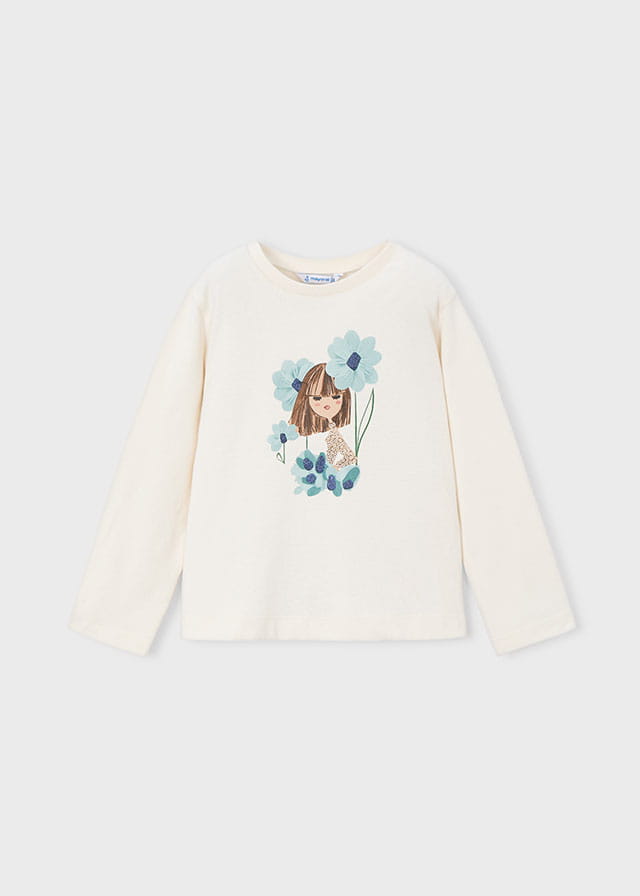 Bluzka z okrągłym dekoltem, krój prosty, nadruk z przodu ubranka, 100% bawełny.