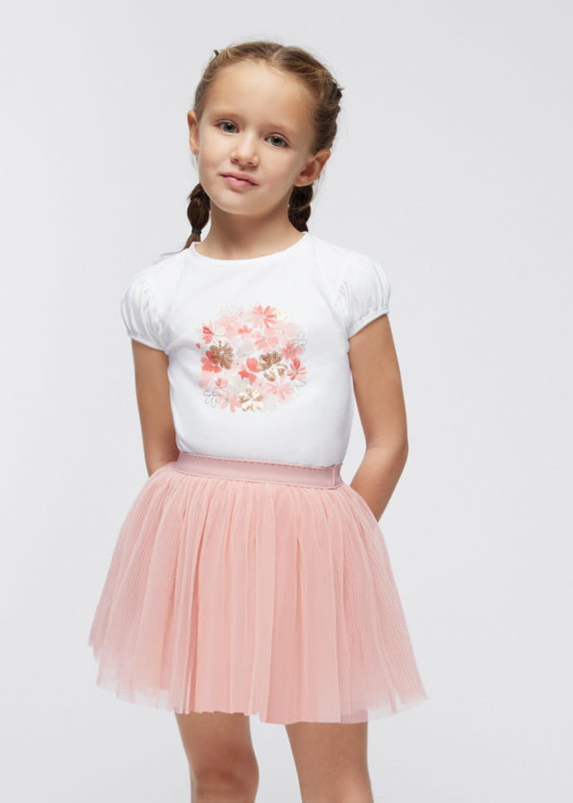 Mayoral Komplet Spódnica Kwiaty Tiul 3953 Nude- rozm 104