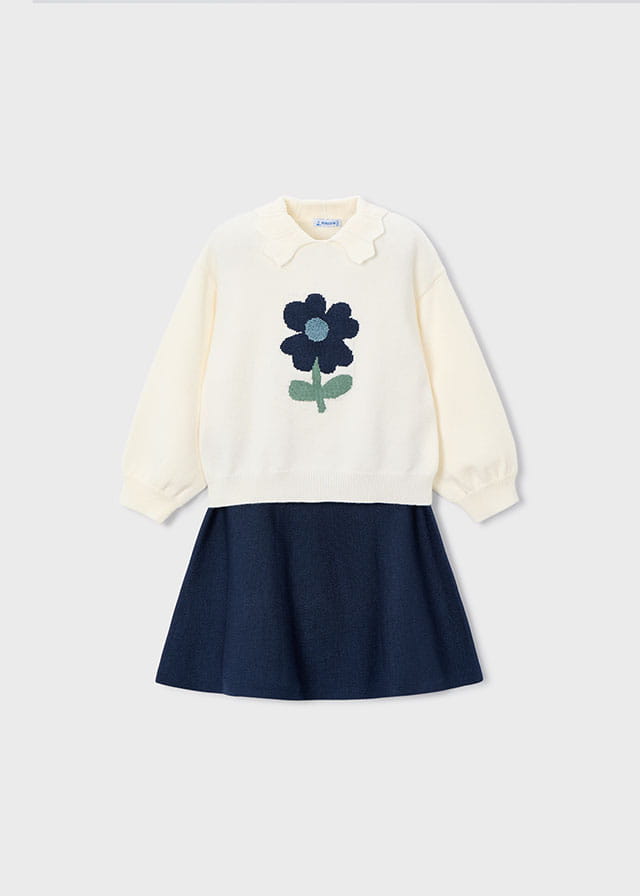 Mayoral Komplet Spódnica Sweter Kwiat 4932 Nafta Granatowy - rozm 92,122