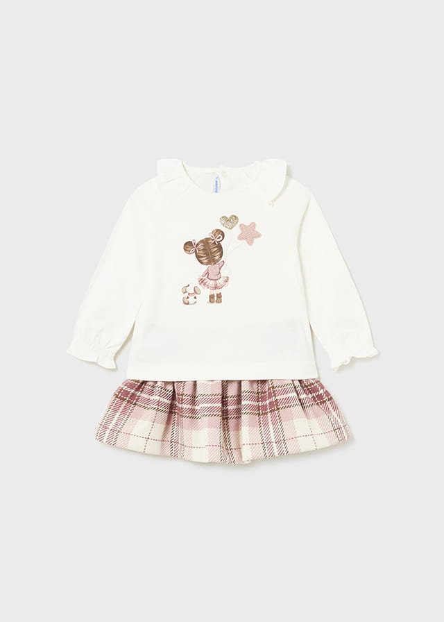 Mayoral Komplet ze Spódnicą Krata 2927 Pąsowy Róż -rozm 80,86