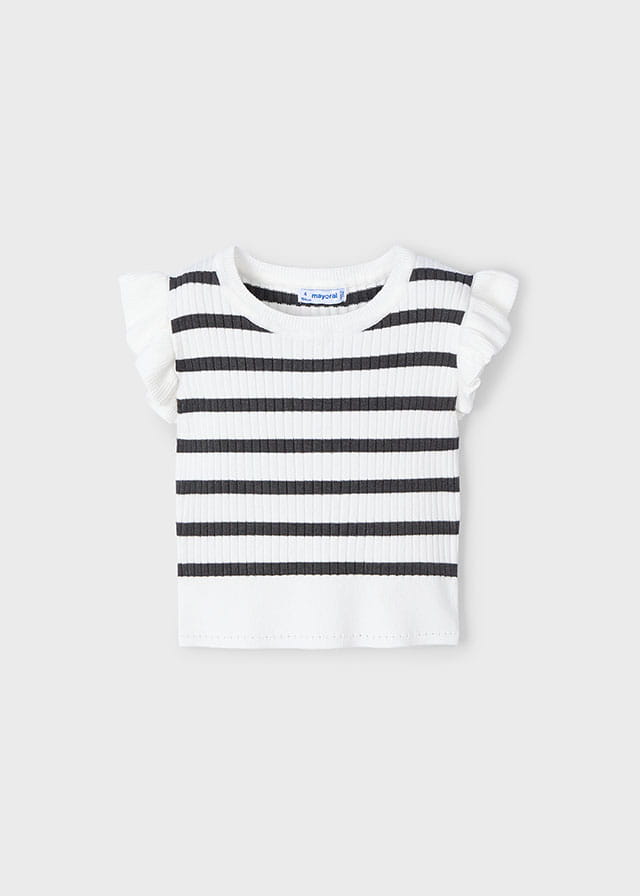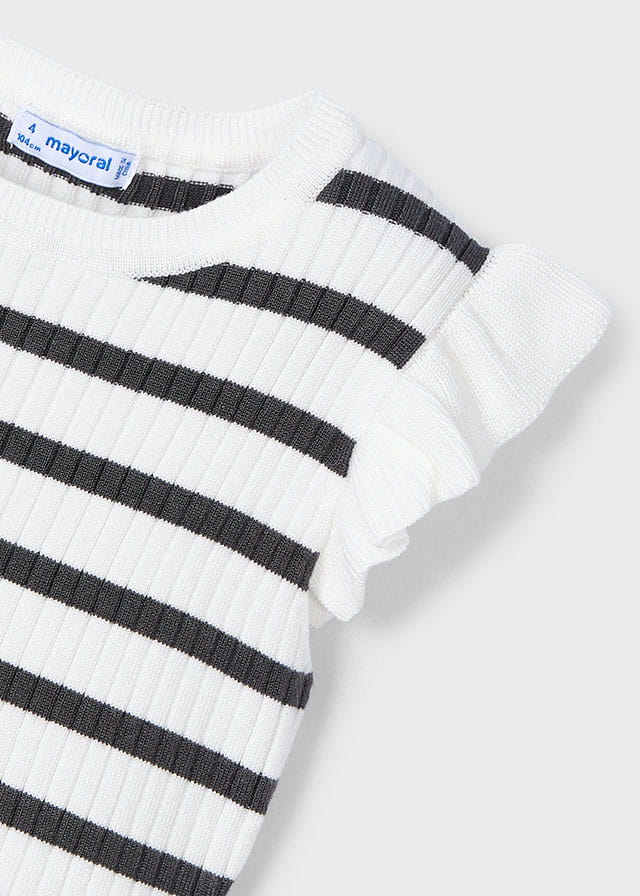 Mayoral Koszulka Elegancki Top Prążek Trykot Paski 3024 Biały Grafit - rozm 104-134