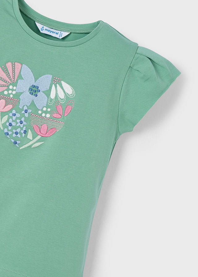 Mayoral Koszulka k/r Haft Serce 3015 Mięta - rozm 110,116
