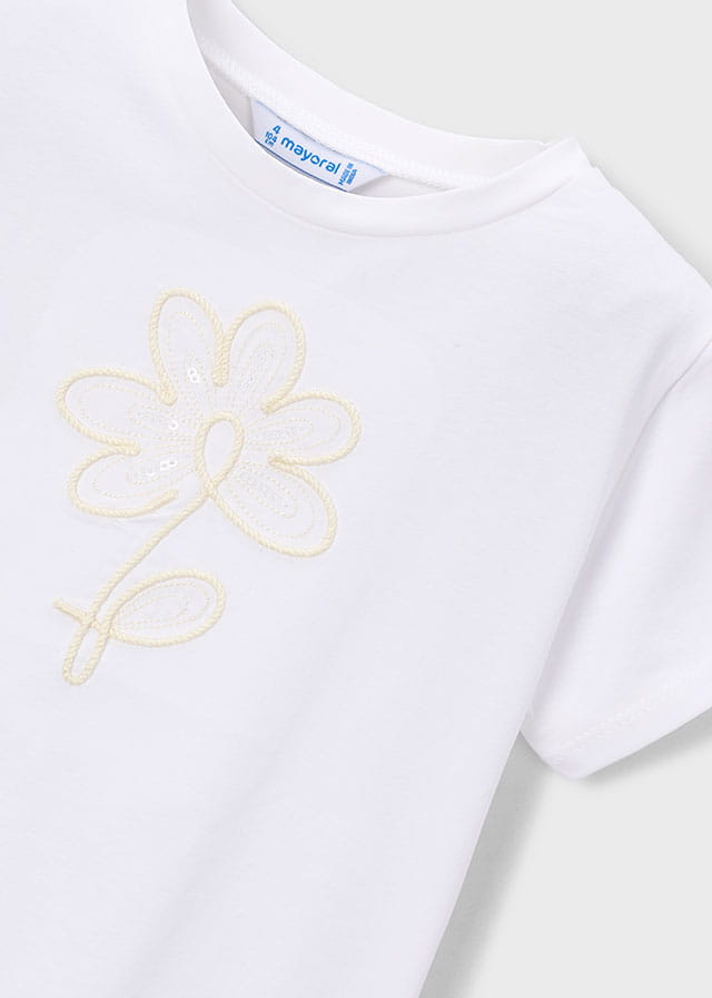 Mayoral Koszulka k/r Kwiat Basic 0174 Biały - rozm 104-128,140