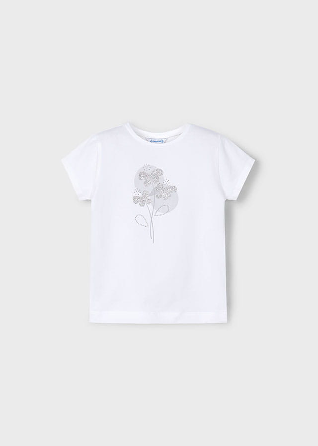 Mayoral Koszulka k/r Kwiat Motyl Basic 0174 Biały - rozm 104,110