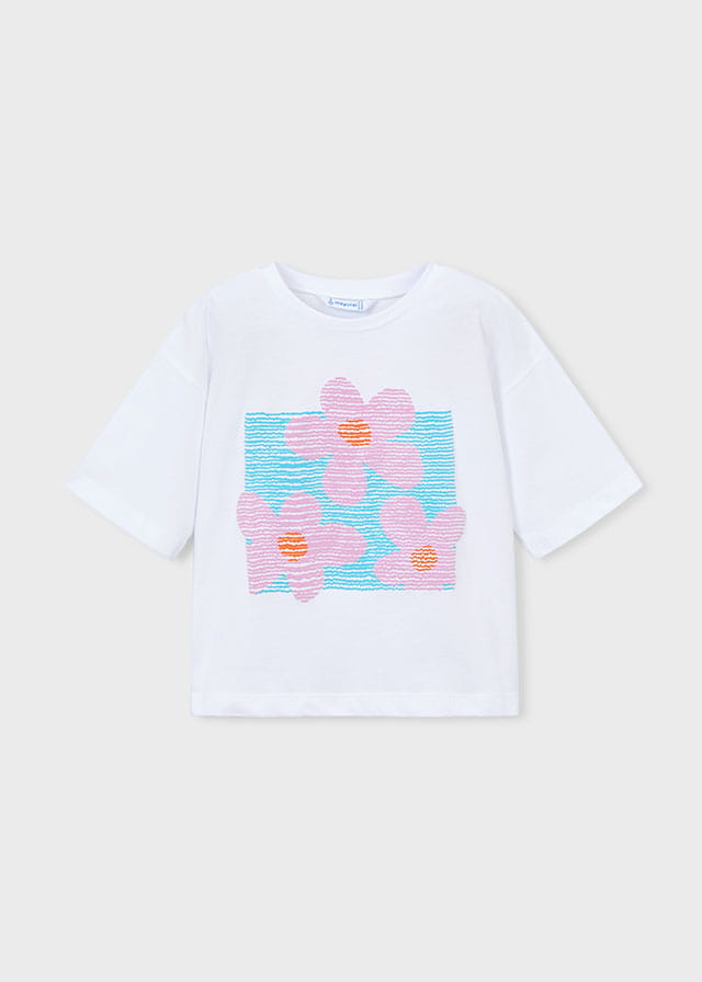 Mayoral Koszulka k/r Kwiaty 3016 Biały Liliowy - rozm 104-122,134,140