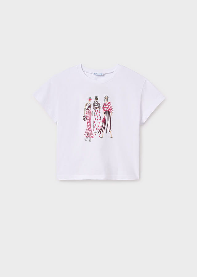 Mayoral Koszulka k/r Modelki 6030 Biała Hibiskus -rozm 140