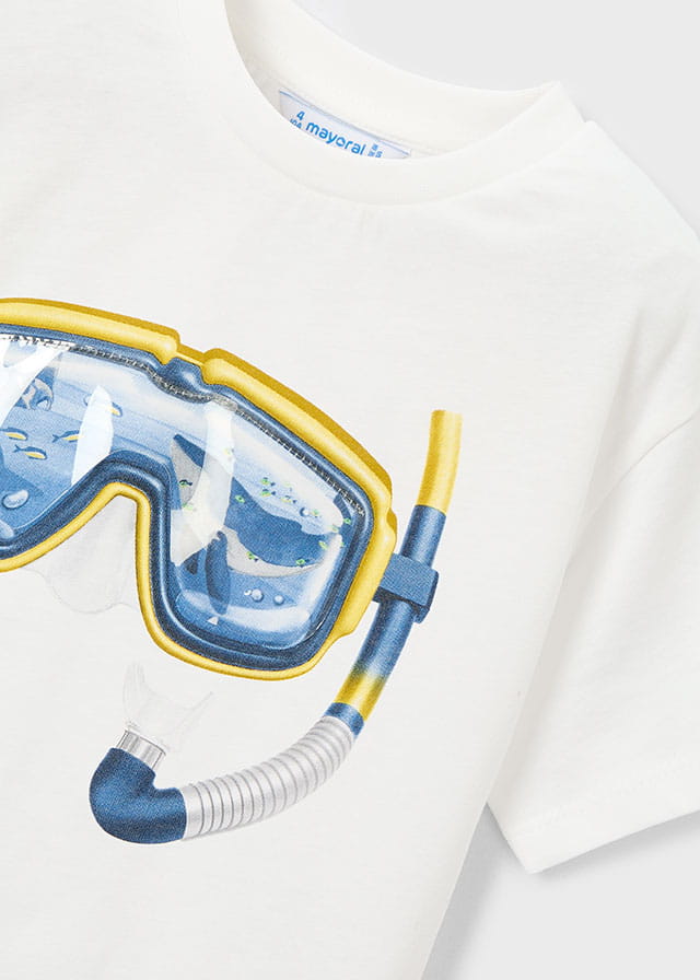 Mayoral Koszulka k/r Rybki Maska 3081 Biały - rozm 104-140