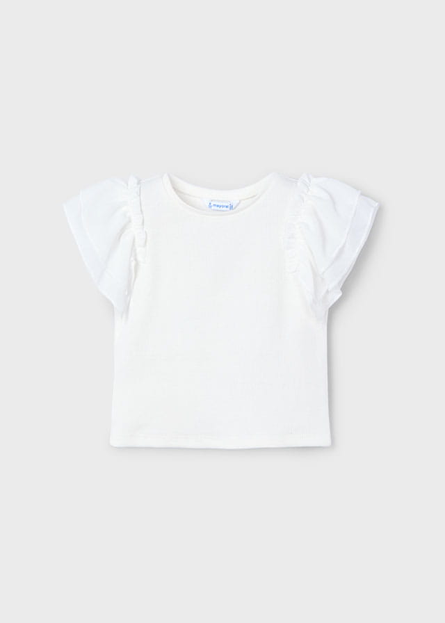 Mayoral Koszulka k/r z Tiulowymi Rękawkami 3013 Kremowy - rozm 104-122,134
