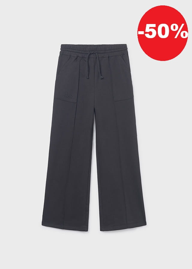 Spodnie szerokie typu kuloty dla dziewczynki. Elastyczna gumka w pasie oraz sznurek dla lepszego dopasowania. Z przodu dwie duże kieszenie. Ubranko wykonane z miękkiej, elastycznej i wygodnej dresówki.