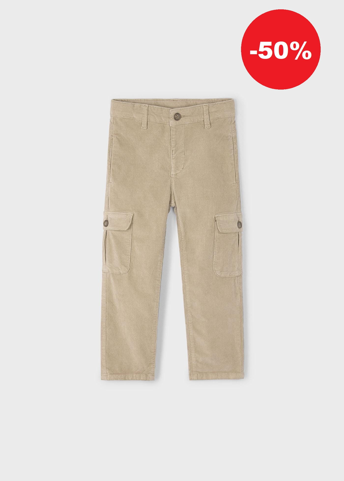 Długie spodnie dla chłopca w stylu cargo, poszerzane w górnej części z opadającym stanem, o normalnej szerokości w nogawkach. Wykonany z elastycznej tkaniny typu sztruks. Zapięcie na zamek i guzik. Regulowana gumka w pasie dla lepszego dopasowania. Model z wieloma kieszeniami. Ze względu na wymogi bezpieczeństwa, mniejsze rozmiary (2-5 lat) posiadają imitację rozporka, bez zamka.
