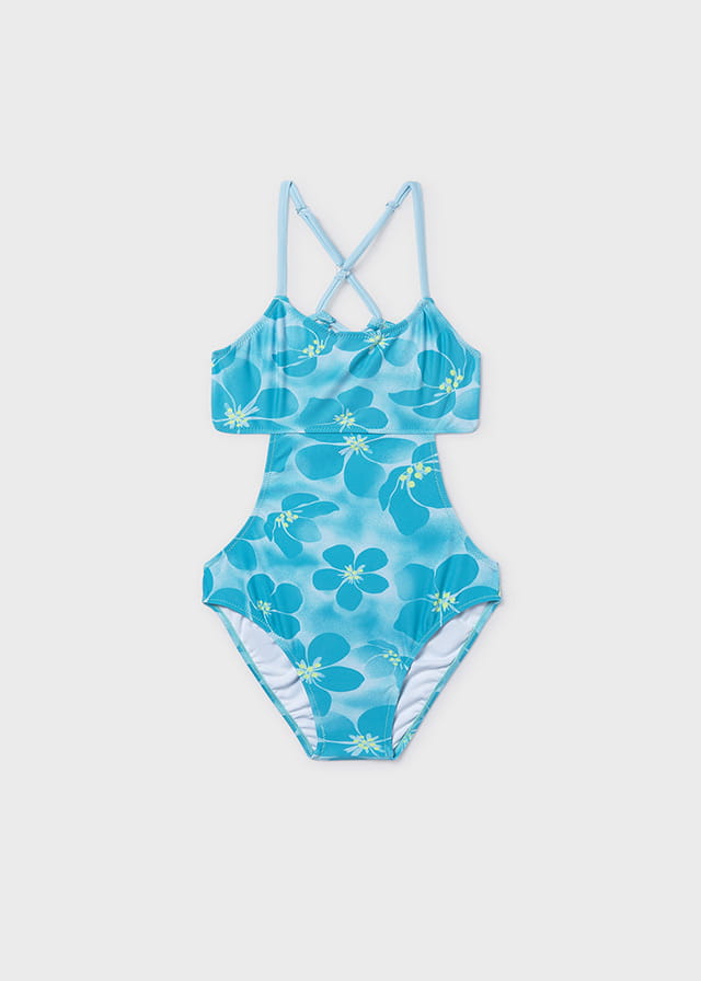 Mayoral Strój Kąpielowy Wycięcia Kwiaty 6777 Pacyfik -rozm 140-157
