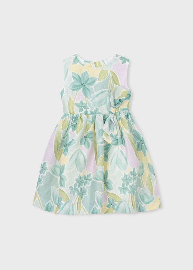 Mayoral Sukienka Len Kwiaty Śliczny tył 3913 Woda - rozm 104,110,128