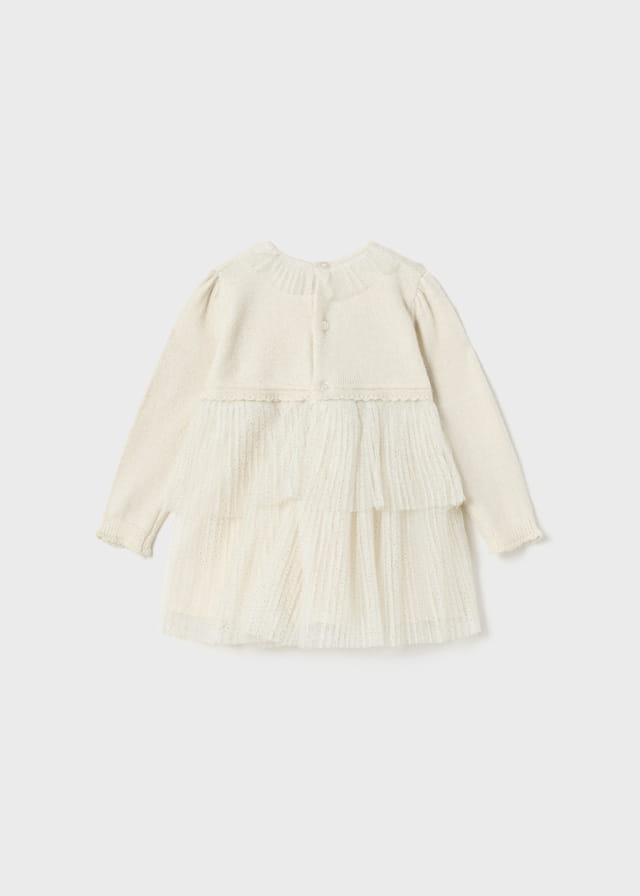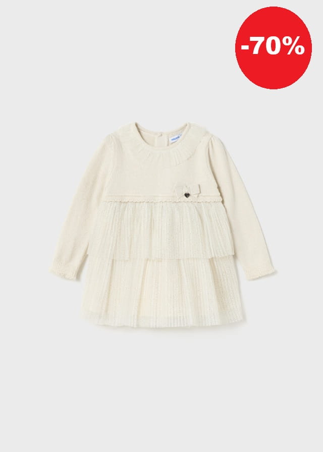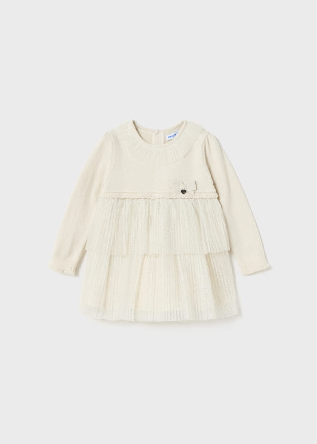Mayoral Sukienka Trykot Plisa Brokat 2979 Kość -rozm 74,86