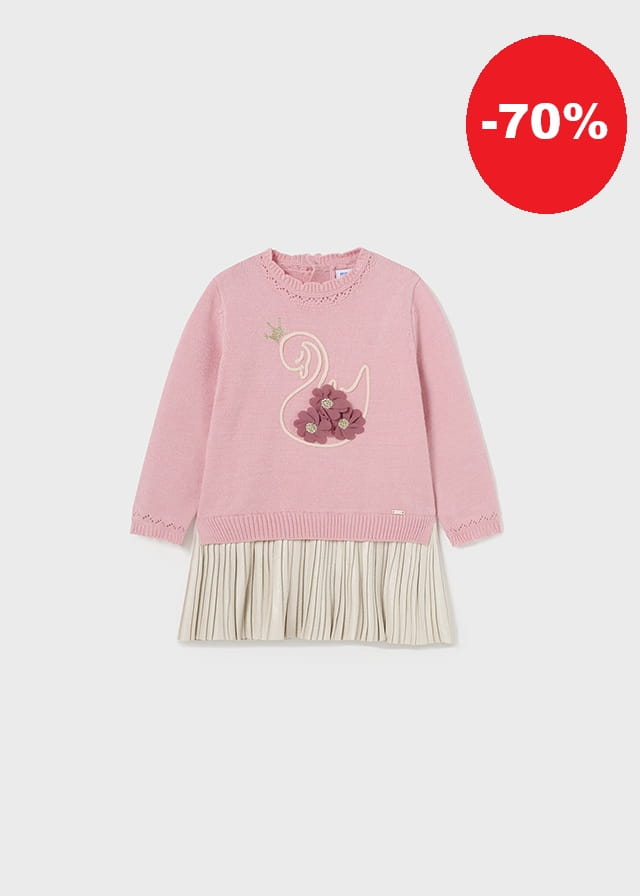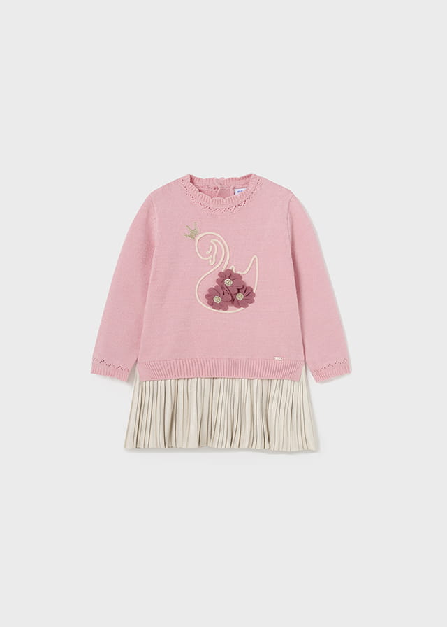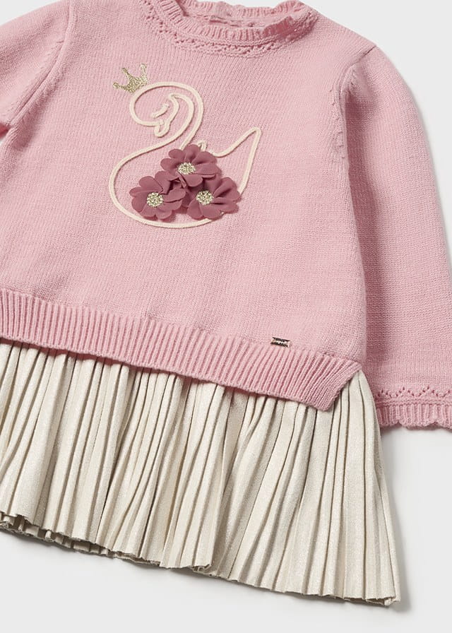 Mayoral Sukienka Trykot Plisa Łabędź 2975 Różowa Złota -rozm 74,80