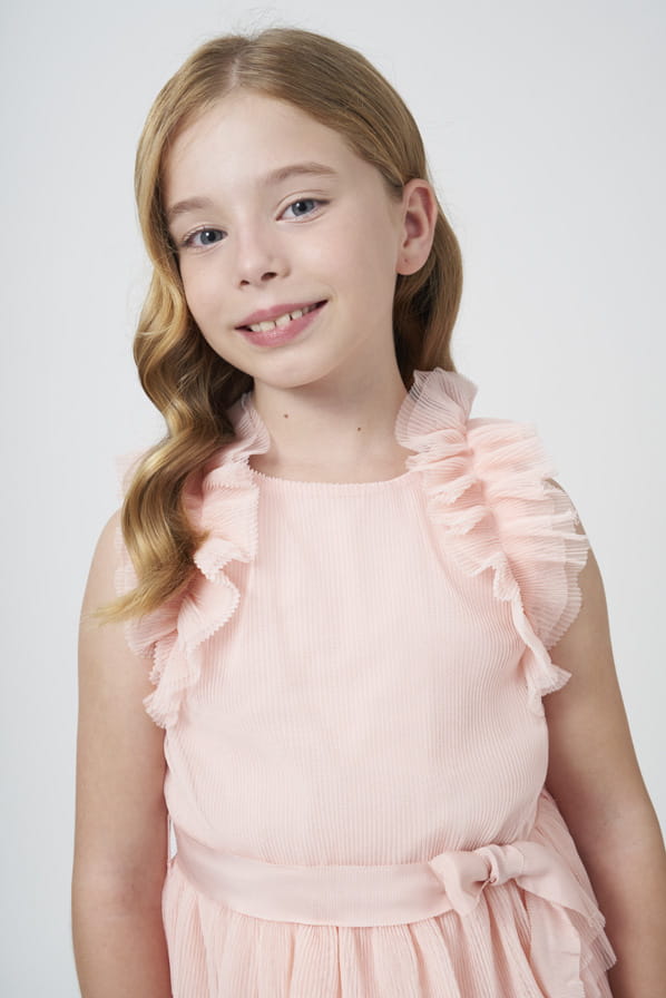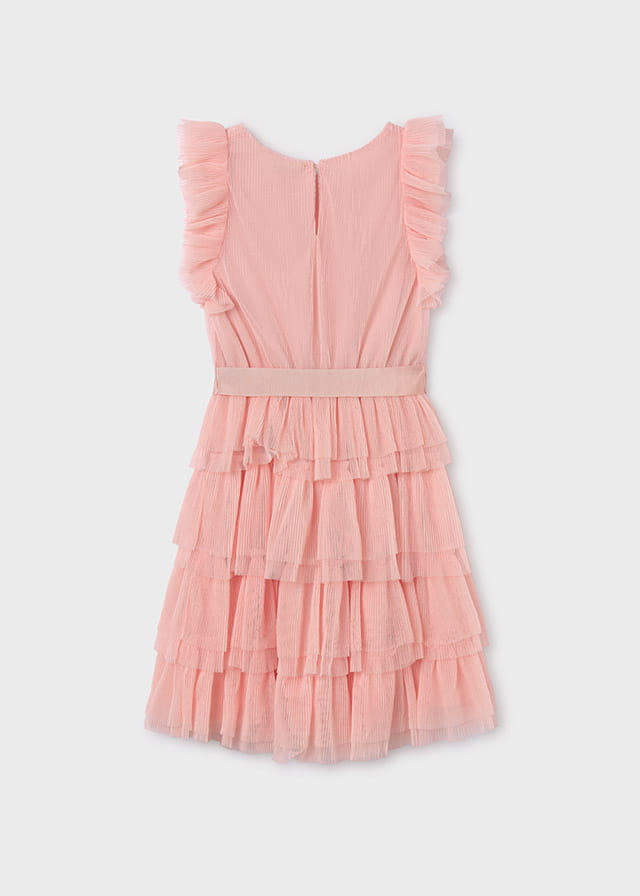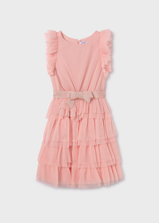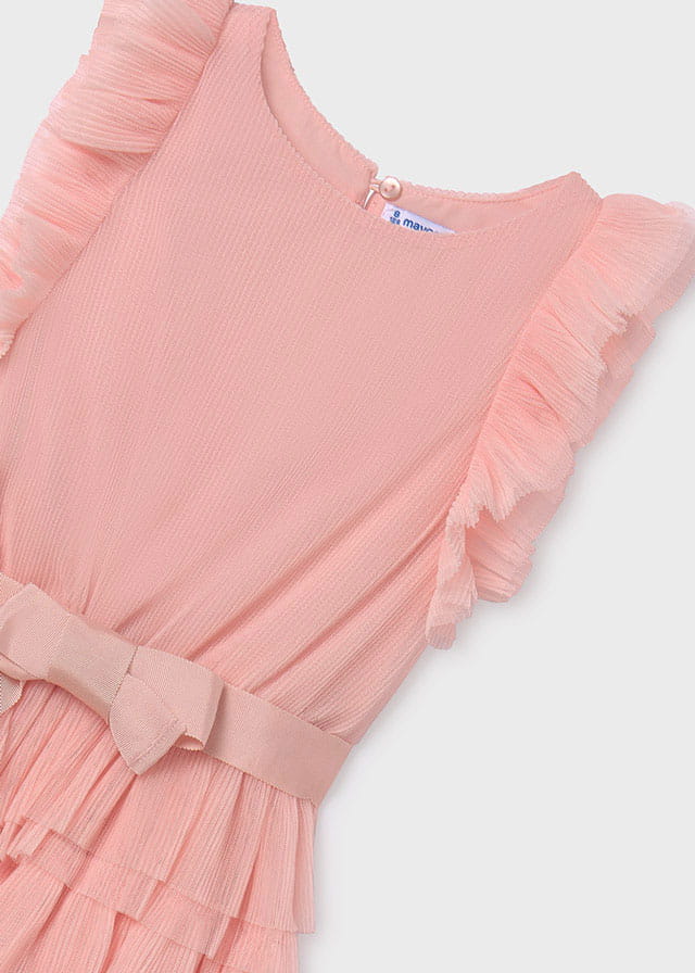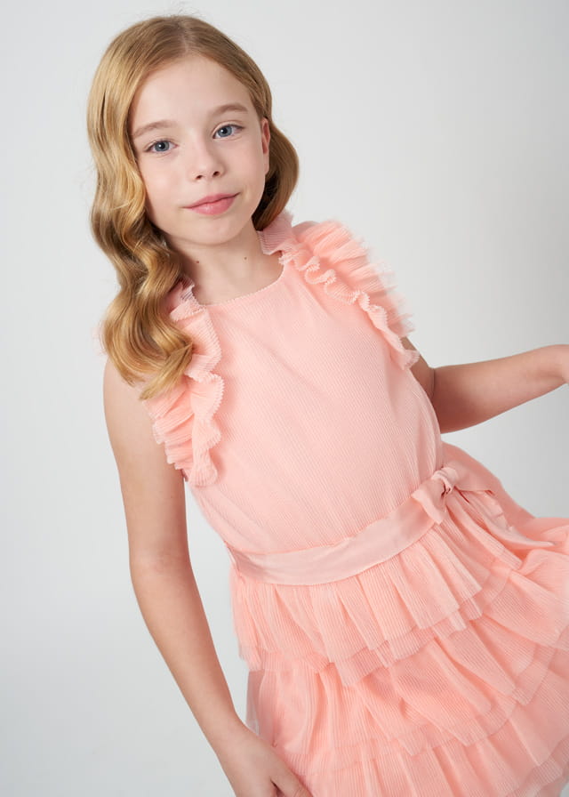 Mayoral Sukienka Wizytowa Tiul Falbany 6943 Brzoskwiniowa -rozm 128/134