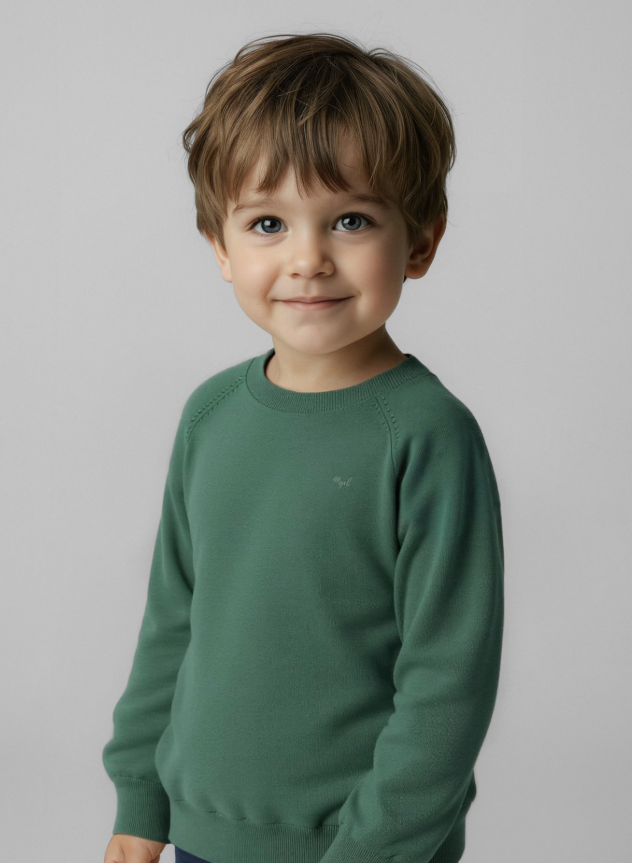 Sweter z długim rękawem dla chłopca. Okrągły dekolt. Tkanina delikatna i przyjemna w dotyku. 100% Bawełna
