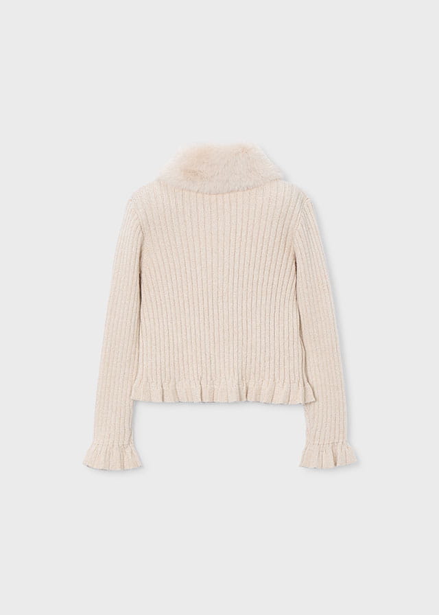 Sweterek posiada futerkowy, odczepiany kołnierz.