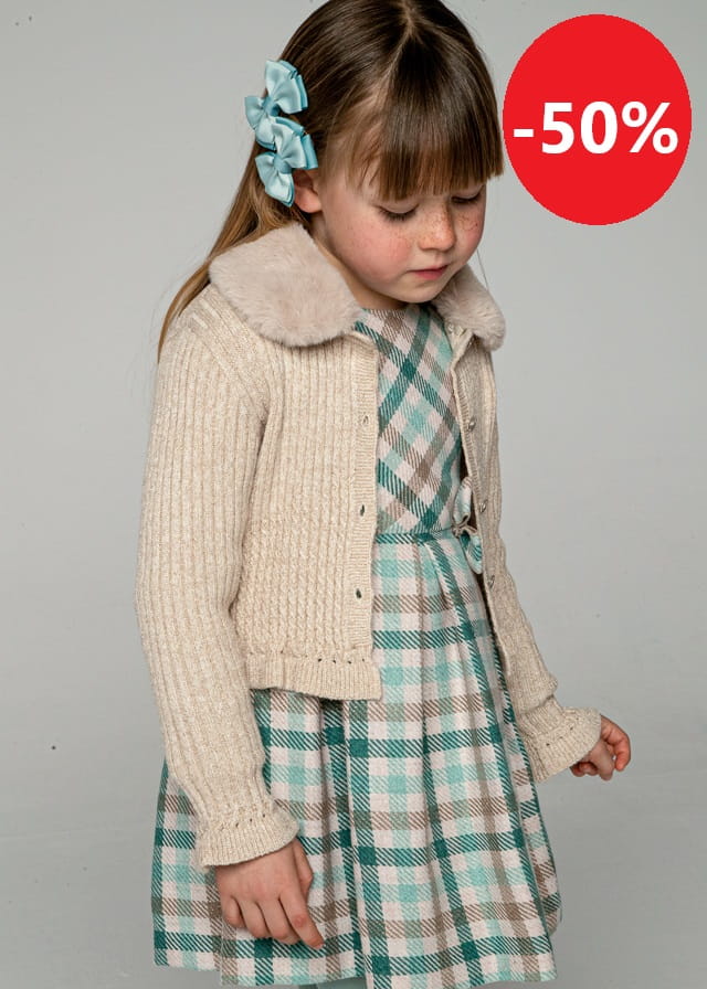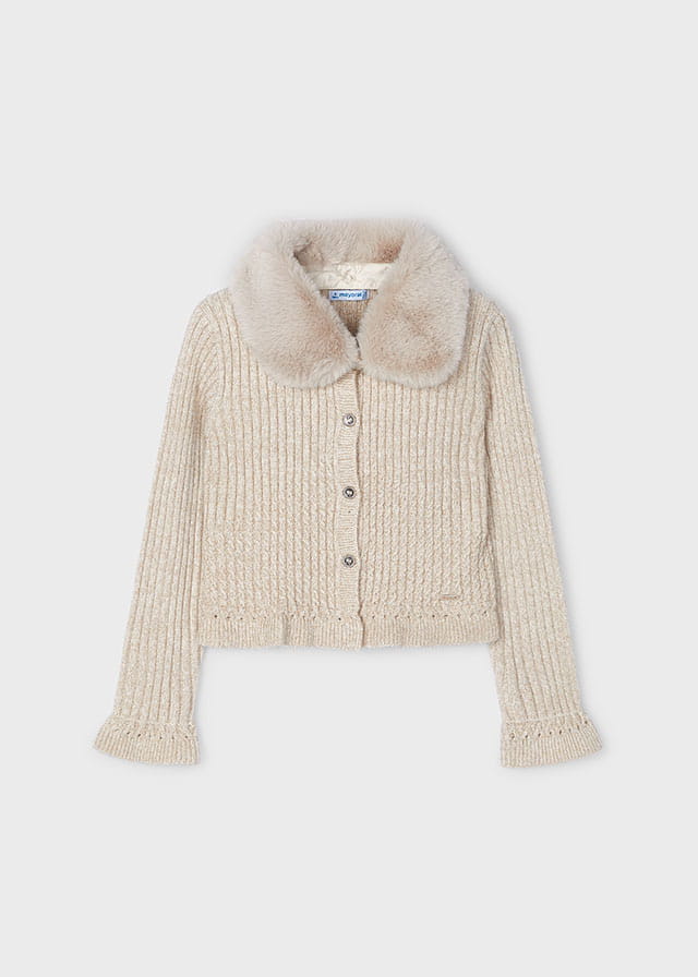 Mayoral Sweter Rozpinany z Futerkiem 4362 Marcepan Złoty -rozm 122