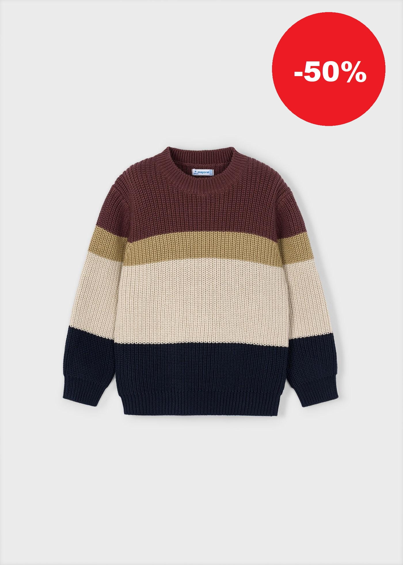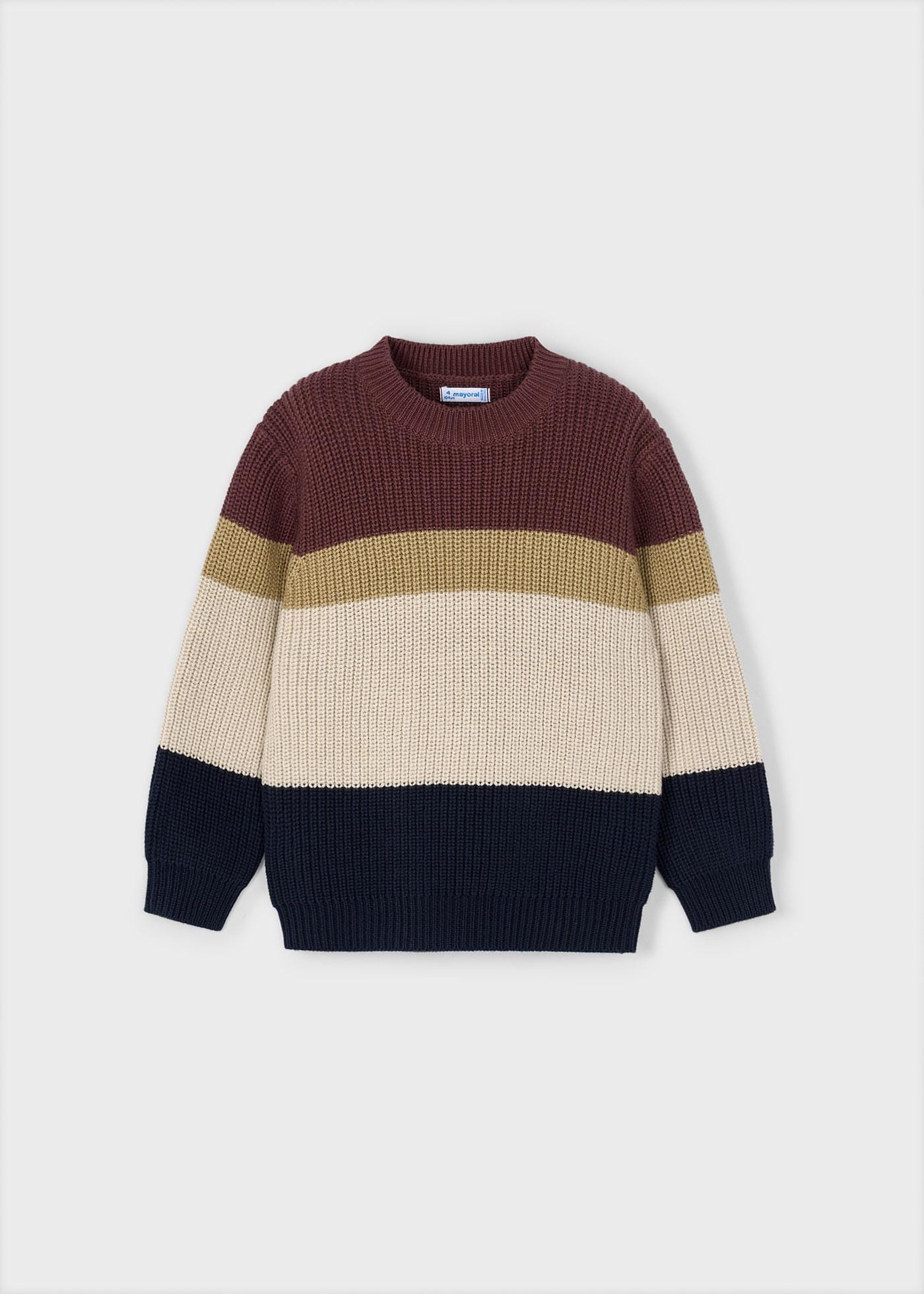 Mayoral Sweter Trykot Pasy 4379 Beż Brąz Granat Śliwka -rozm 104