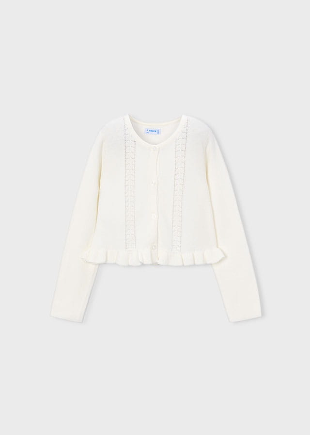 Mayoral Sweterek z Falbanką i Ażurem 3383 Kremowy - rozm. 104,110,122-140