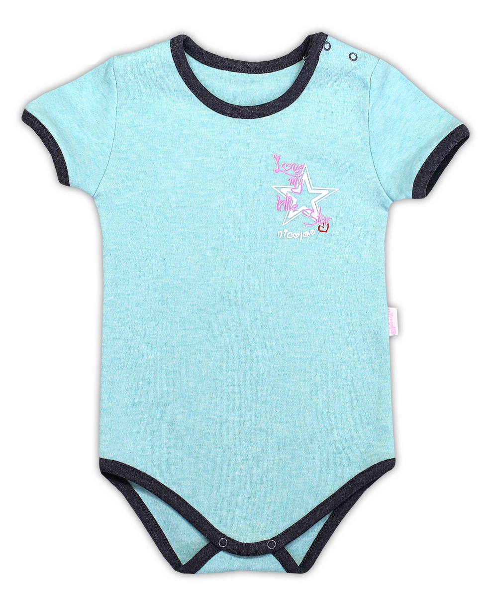 Bawełniane, miętowe body z krótkim rękawem ozdobione szarą lamówką idealne dla Prawdziwej Gwiazdy.