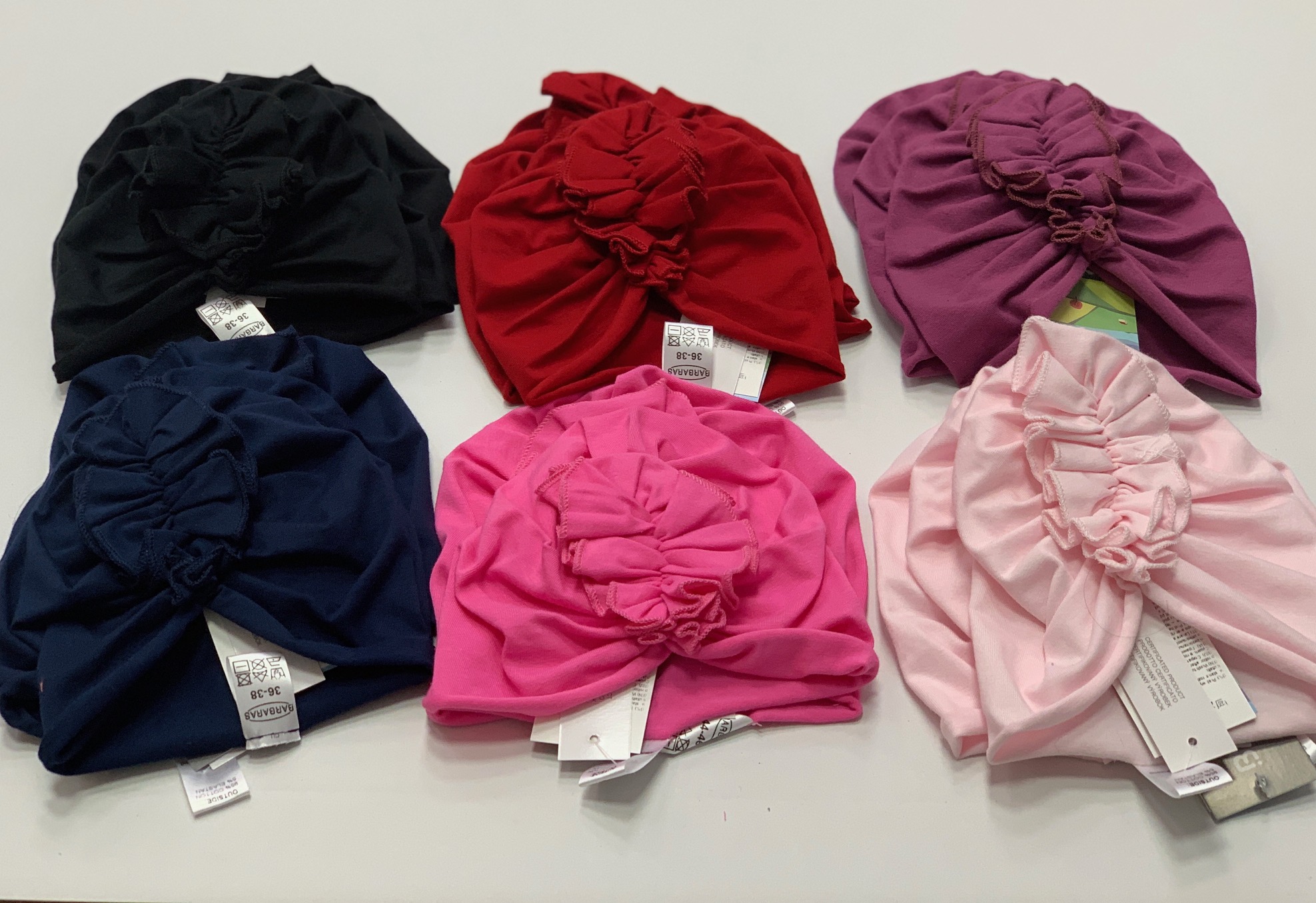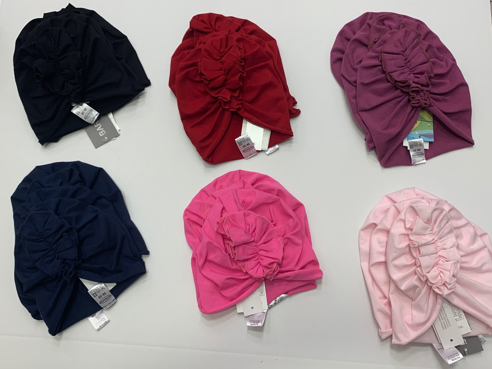 Czapka turban polskiego producenta Barbaras. Czapeczka z pojedynczego, przyjemnego w dotyku materiału. Uszyta w taki sposób aby zakryć uszka dziecka.
